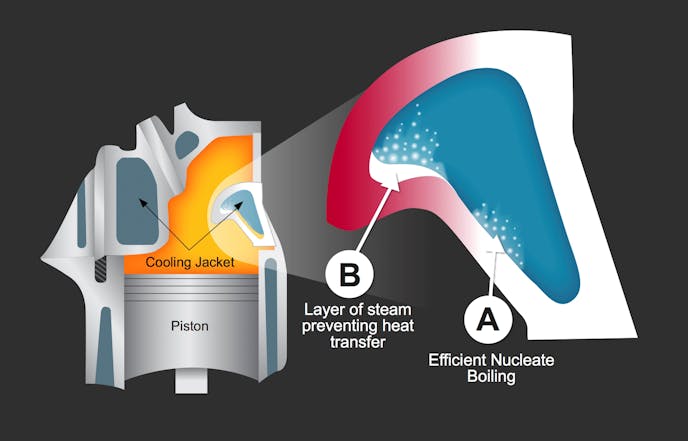 When water-based coolants hit their boiling point and turn water to vapor, it can damage the engine because coolant can’t come in contact with the overheated metals. These hot spots will cause the overall engine temperature to rise and cause engine damage. Mike Evans from Evans Waterless Coolant explains how waterless coolant can avoid these heat-related issues.