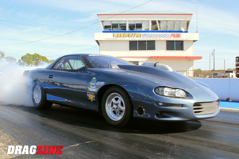 Undaunted by this setback, the family pulled the wounded engine out and replaced it with a healthy 420 cubic-inch small block Ford engine with a C6 transmission to handle the gear changes. That new combination woke the Mustang up and propelled it to a best of 10.32 at 128 mph on nothing but the motor.