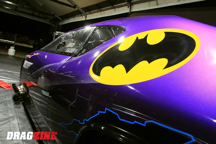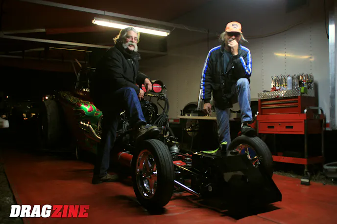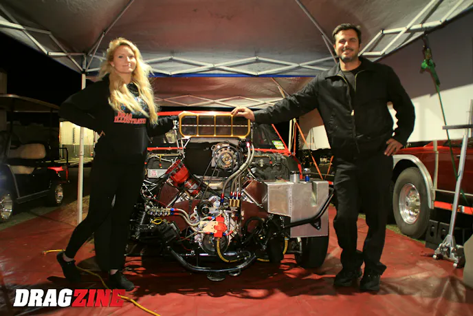 “After I got bored with the 10.3 passes, I totally cut everything out of the car except the rear back half. From there, I built a 25.4 spec chassis in the garage of my parent’s house and upgraded the front suspension to a Mustang two coil over style suspension. The new motor is a 455 cubic-inch small block Ford with a single fogger that’s backed by a powerglide,” Martin explains.