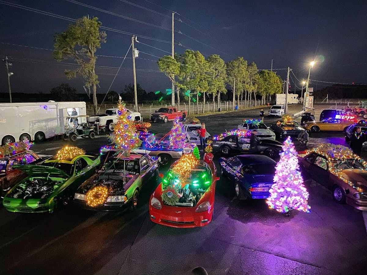 YouTube sensation Cleetus McFarland recently staged the most epic of drag races, with horsepower for days and Christmas cheer on an even higher magnitude. Cleetus, along with a host of his racing buddies and Florida locals, descended on the Bradenton Motorsports Park — less than a stones throw from his now-famous Freedom Factory oval track — to put on a race where the only rule in the book was to light up the night as only Clark W. Griswold could. From Christmas trees tied to the roof — and even standing on the roof — to lights wrapped around engines, wrapped gifts in the cockpit, and a wreath on a turbo, it was all on full display!