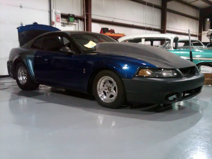 This may be the only time you get a glimpse of the front end as you may just be looking at the tail lights of this 04' Cobra. Photos: DMC Racing