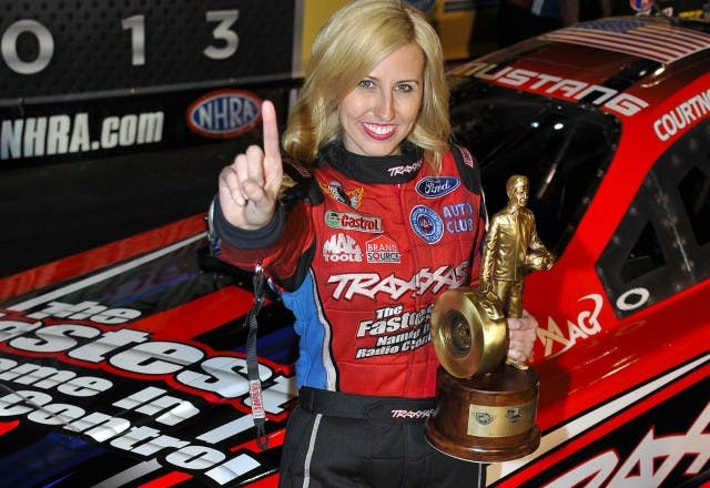The 24-year-old from Yorba Linda, Calif., a former national event champion in Alcohol Dragster, reached four Funny Car finals in her 2012 rookie season. In July she defeated reigning Funny Car Champion Matt Hagan in the Seattle final for one of the most well-received victories by any driver in any drag racing class all season. A runner-up finish to Cruz Pedregon in the Pomona finals showed she’ll be a Funny Car title contender in 2013 – and victory in the season-opening Winternationals confirmed it.