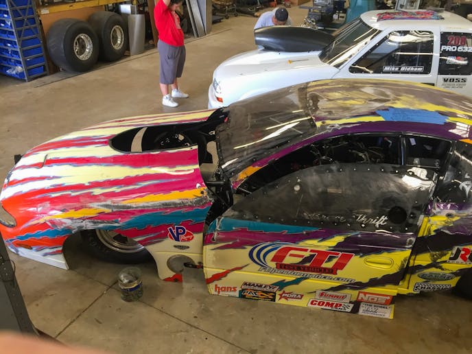 Anytime there is a crash at an NHRA-sanctioned track the safety team will take a look at the car and remove the chassis sticker from the roll cage. This is done to ensure the car is repaired and goes through the recertification process and deemed safe. At that point, a racer will need to take their wounded ride to a chassis shop where they can evaluate the damage and see if the car can be repaired.