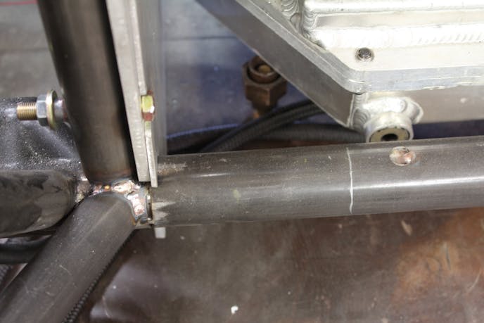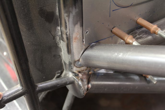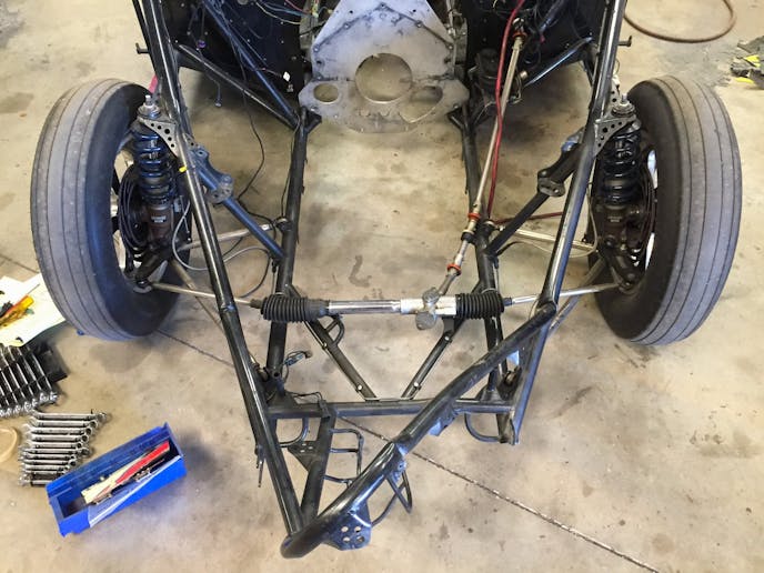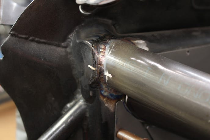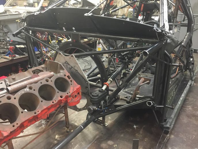 “Up front, it’s all in the front strut area from the A-pillar post area forward, and the midplate area forward. That’s typically the biggest thing we see — the car needing to be front-clipped, unless they took a side shot or rolled it. In the back, it’s usually the wishbone, four-link bars, rearend housing, axle flanges — those are the parts that can get moved around. You have to check all the upper frame bars to make sure they’re square in the rear, too. Ultimately you’re going to put the car on a jig table, make sure everything is square, and if it isn’t, it will get cut off and replaced,” Perry says.