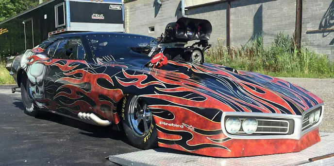 The McKune’s, eyeing the big leagues of Pro Modified racing, recently purchased a G-Force Race Cars-built 1968 Pontiac Firebird with an estimated 20 passes on it and have paired the double framerail chassis with a 526 cubic inch Brad Anderson HEMI backed by a B&J transmission and a Quick Drive converter drive unit.