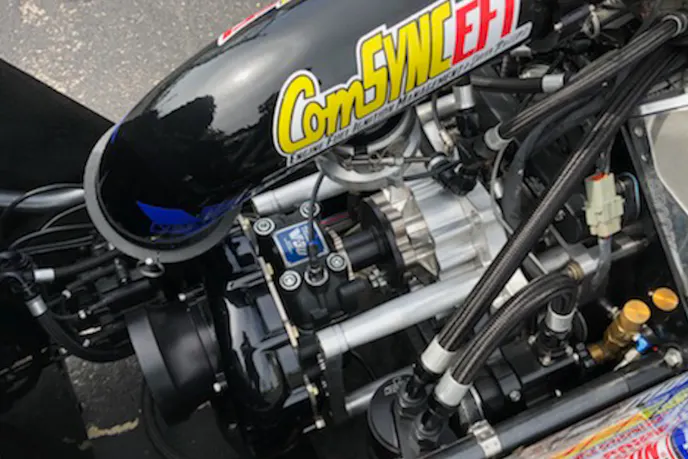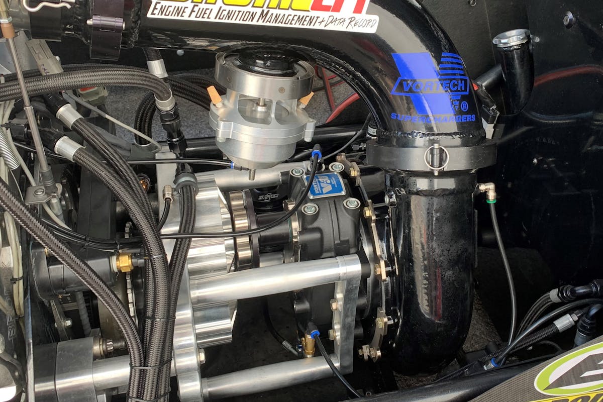 “When I started racing Top Dragster in 2015 we tried a roots-style supercharger and it just didn’t work out. I tried another centrifugal supercharger in 2016 and it didn’t really work out either. I met Lance and the guys with Vortech at the PRI Show in 2016, and the following season I made the switch to Vortech. Vortech has been great to work with — I’ve been number one qualifier multiple times even when the minimum dial was 6.00,” Nelson says.