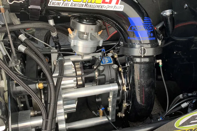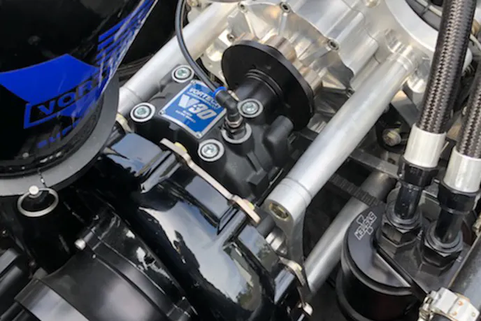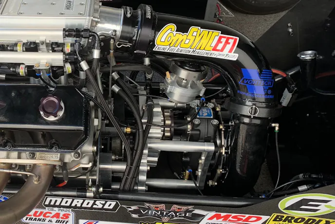 The name of the game in Top Dragster is consistency, and the Branon Performance engine that Nelson utilizes helps make that happen. Another important part of the horsepower puzzle is the power-adder, and for that, he relies on a V-30 supercharger from Vortech.