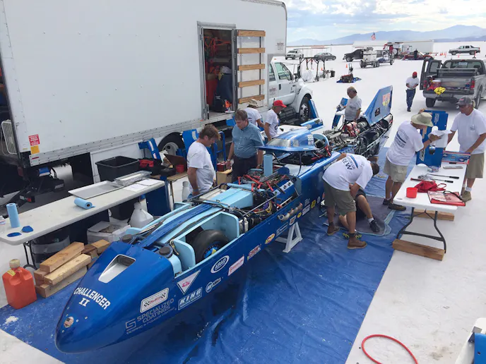 With the annual Mike Cook’s Shootout just around the corner from Speed Week, many of the top challengers in the land speed record game turned their attention this five-day event to bust into the record books, and Thompson and company were among those to get an early start with some testing runs down the fabled salt flats.