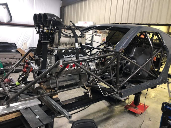 “El Diablo and Timmy Meissner’s Mustang are carbon copies of the Corvette; both of those cars have performed at the track, so that proved the design works. This new car uses the same chassis design, but it has a lot more weight savings built into it. The tail section of the car is all titanium, so we can take extra weight out without really affecting the chassis design. We also moved the engine location on this new car based on what we learned with other builds. By changing the engine location we hope to keep this car from trying to wheelie and that will let us throw more power at it and do it quicker,” Reese explains.