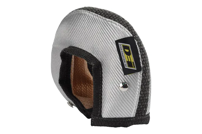 It is a skillfully constructed, tri-layer material design that uses advanced technology to ensure heat stays where it belongs – inside the turbocharger. The outer shell is made of aluminum impregnated glass fiber with a high temperature insulating mat core and a silica glass blended interior liner. Double stitched seams and smooth capped anchor points, distinguish this shield as a true Made in the USA quality product. The shield covers aftermarket turbos – Garrett, Precision, TIAL, Turbonetics or Borg-Warner.
