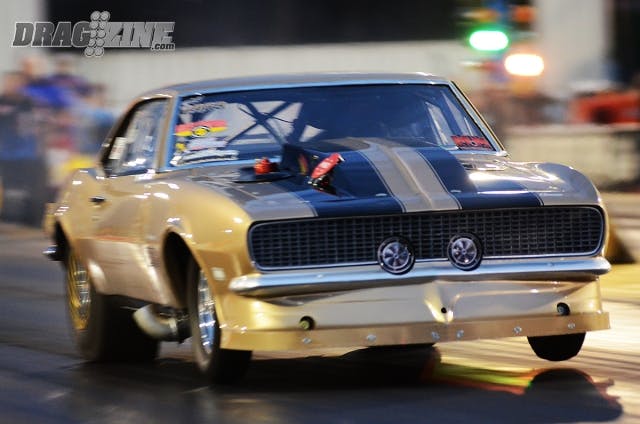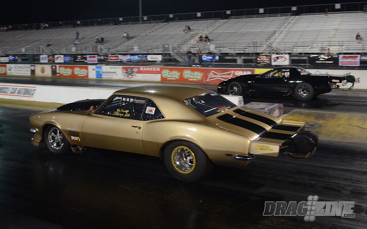 Late Sunday evening in St. Louis, long after the majority of the rain and sun-drenched racing fans had already headed home from the NMCA Muscle Car Nationals to prepare for their Memorial Day celebrations and leaving only a scant few diehards to witness it, Oklahoma native DeWayne Mills and his twin-turbocharged Camaro blasted off into the darkness in a titanic semifinal matchup in the Radial Wars class with Keith Berry, lighting the scoreboards up with a winning 4.232-second elapsed time, with a staggering speed of 202.24 miles per hour — the fastest ever recorded in the eighth-mile by a radial tire-equipped car and the first over the magical double-century mark.