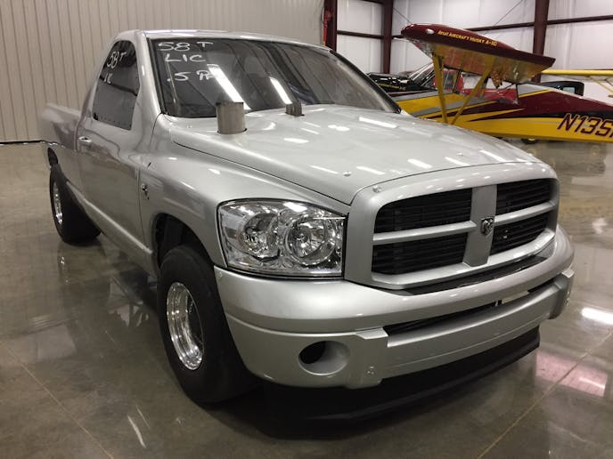 Jean-Pierre Libert’s day job as a helicopter crop duster pilot in Dos Palos, California may keep his head in the clouds, but his 2007 Dodge Ram shows his need for speed is firmly planted on the ground. The truck that Libert has built with help from Cory Dow at Dow Brothers Race Cars isn’t your average diesel truck — this Ram is ready to smash deep into the seven-second zone at the track.