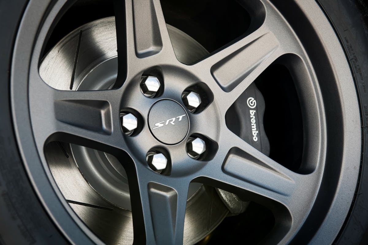 The same can be said for the Challenger SRT Super Stock. While it may look like an ordinary Challenger with no special “Super Stock” badging, it packs the most powerful punch of the Challenger lineup, falling back on the Dodge motto, “if you know, you know.” The giveaway to identifying the SRT Super Stock: the 18-inch-by-11-inch wheels with a Low Gloss Granite finish, riding on massive, sticky 315/40R18 Nitto NT05R drag radials at all four corners.