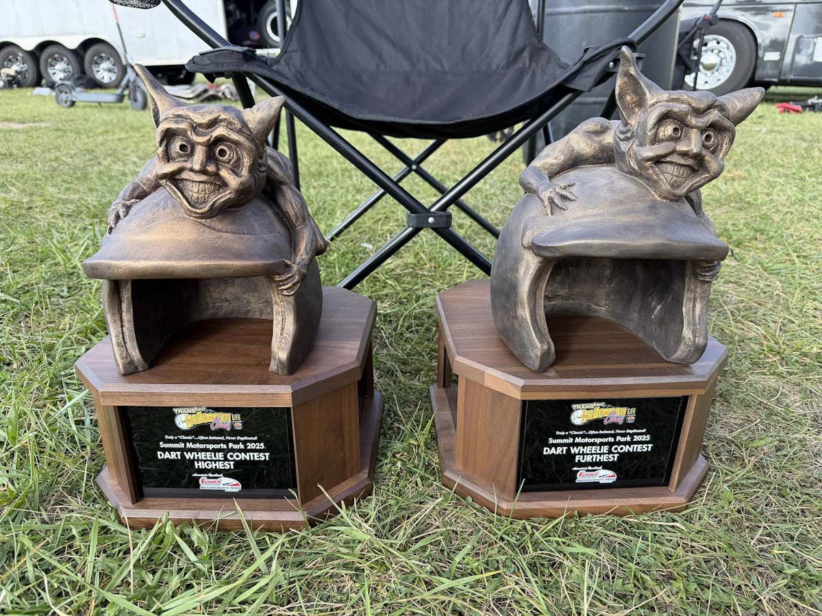 In a field of traditional door cars with freshly crushed oil pans and bent fenders, Chris Schneider pulled off perhaps the upset of the season when his dragster — yes, dragster—won the Dart Machinery Air Show wheelstand contest at Summit Motorsports Park’s annual season-ending Halloween Classic.