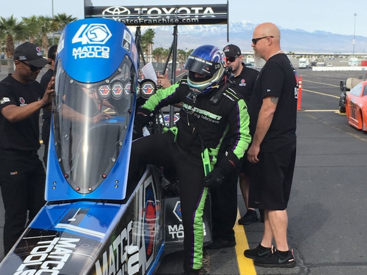 Matt Sackman, cylinder head specialist on the Matco Tools Top Fuel dragster and a Don Schumacher Racing developmental driver, successfully earned his NHRA Top Fuel license on Monday, April 8, at The Strip at Las Vegas Motor Speedway.