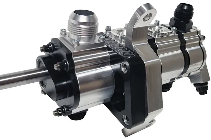 A dry sump oil pump pulls oil from a shallow oil pan and sends it to the external oil tank that feeds the oil back into the engine. The engine can generate more horsepower since the rotating assembly doesn’t have to deal with the excess oil in the pan. The dry sump system allows for more crankcase vacuum to be created, too…this helps the rings seal better so the engine can make more power. The engine also has more mounting options since there’s no large oil pan to deal with.