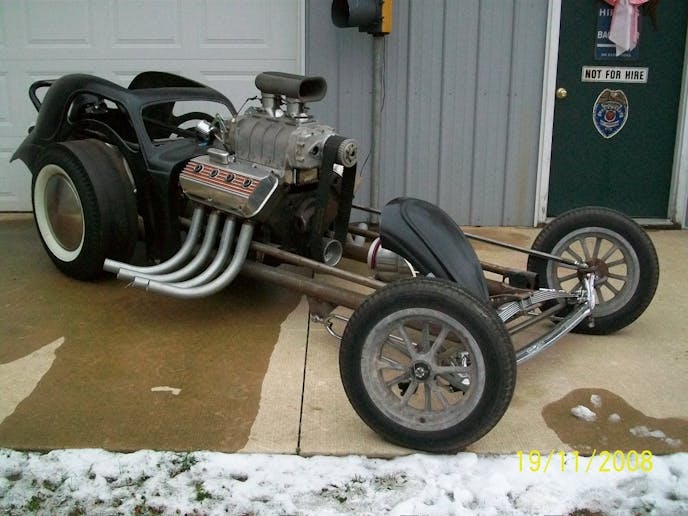 Virtually everything else is there, as well, from the clutch can and clutch cross shaft, to the bitchin’ set of early zoomie headers and header flanges, Hilborn fuel pump, chrome and stainless front end, steering arms, Drag Link, spindles, tie rods, axles, and plenty of other classis pieces we won’t bore you with here.