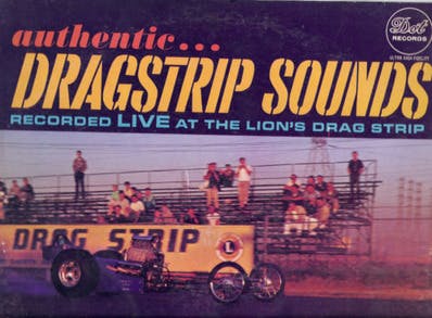In the winter of 1964, before there were high tech digital audio recording devices or iPod’s to replay said audio on, a number of races at the famed Lions Dragstrip in Long Beach, California were recorded by Dot Records utilizing electro-voice 664 and 666 microphones, cut on a Scully lathe with variable depth and pitch, and transformed into an album containing authentic dragstrip sounds from the legendary house of speed.