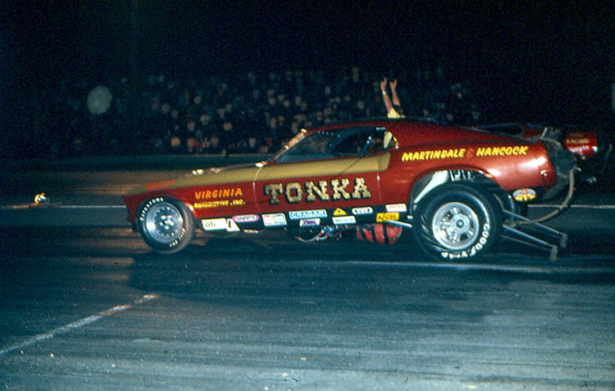 Car owner Michael Deustch shared with us that he’s placed the original 1970 Martindale-Hancock Tonka Mustang Funny Car up for auction on eBay this week, with a no reserve selling price, meaning this drag racing artifact will undoubtedly go to a new home. The Mustang, which sits atop a real Logghe chassis, was last campaigned in Virginia in 1983 by Bobby Martindale and Tex Hancock. Before the duo acquired it, Tommy Grove owned and raced the car.