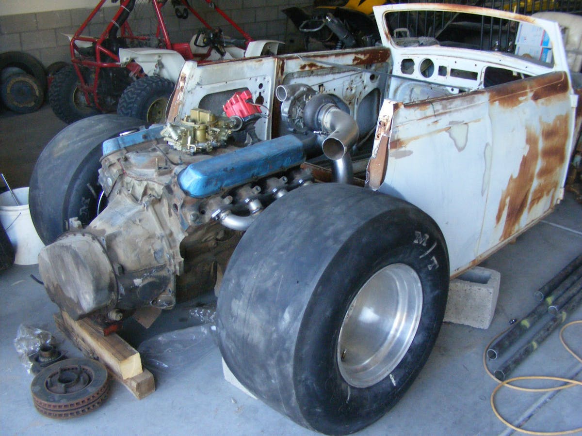 The DOM tube chassis of the car has been started, but can be finished to the new owners liking. Making this project totally awesome is the 500 cubic inch Cadillac engine that has custom turbo headers and a 78mm snail for boost. Putting the power down is a Turbo 425 transaxle setup. With a little bit of work this project VW could be finished up and take the design of the rear engine Beetle to a new level. Whether this will be a racing machine or a street warrior remains to be seen, although all the makings are there for a one-of-a-kind drag racing vehicle.