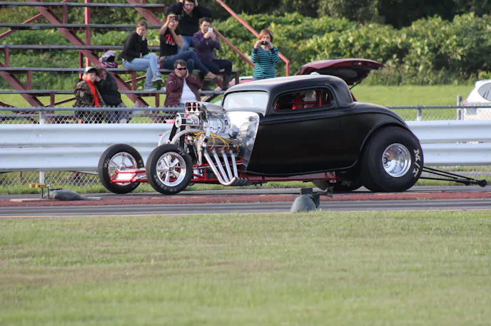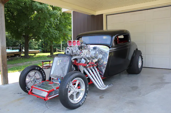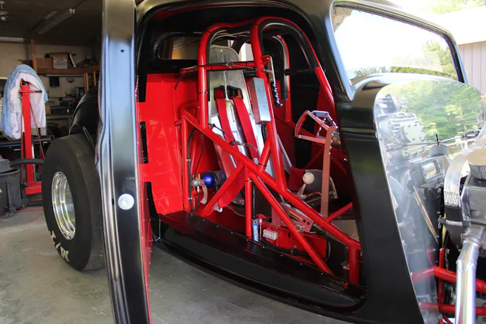 The chassis is legit from front to rear, with a 4-link and coilover rear suspension with an anti-roll bar installed, chromoly wheelie bars, dual-disc rear brakes, with separate hand and foot-operated braking systems from Aerospace Components.