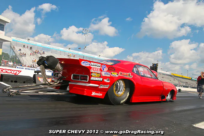 The Northeast Outlaw Pro Mod racers rolled into Maple Grove Raceway last weekend to compete as part of the annual Super Chevy Show and with rain dampening the event for the early part of the weekend, the Pro Modified drivers were sure to turn up the heat for this great race. Drivers like Steve Drummond and Ed Burnley are well known for being able to take on just about anyone in the Pro Mod ranks, and unfortunately on this day Ed Burnley would suffer a horrific crash on the top end of Maple Grove Raceway that ultimately put an end to the racing for the weekend as the Maple Grove crew was unable to repair the damage to the retaining walls. For more up to date information on the condition of Ed, visit the NEOPM website.