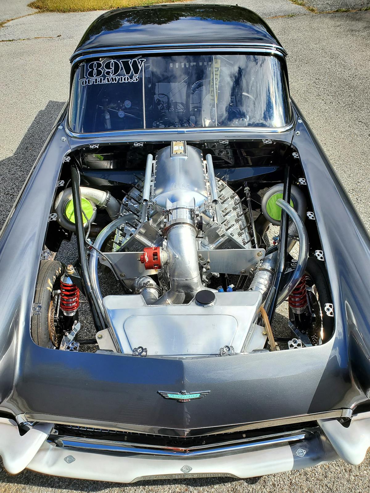 The big feature under the hood is the custom Fathouse Fabrications turbo kit made of stainless steel. Boost is supplied by a pair of Precision 6266 turbos and is chilled by a custom air-to-air intercooler. A set of TiAL wastegates and blowoff valves keep the boost in check when Larry lays into the throttle. A TH400 transmission and PTC torque converter help put the power down and allowed Larry to run a best of 8.42 at 161 MPH while at the track.