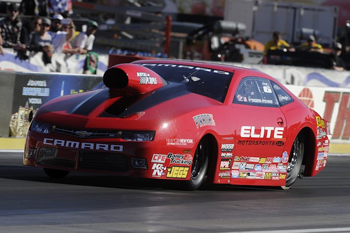 At the controls of her Elite Motorsports Chevrolet Camaro, Enders-Stevens downed her former crew chief, Gray Motorsports driver Dave Connolly — who made his way into the field as the winner of the NHRA’s fan vote ‘wild card’ — in the final round, running 6.64 at 208.39 MPH as Connolly shook the tires early and pushed in the clutch, leaving him only to watch as Enders-Stevens cruised to the $50,000 winners payday.