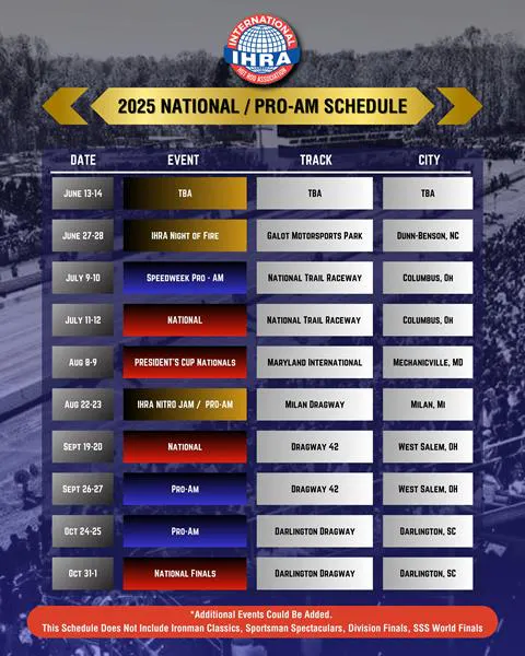 An agreement in principle has been reached to purchase seven tracks in what the IHRA is calling the first phase of a “dynamic strategy to position IHRA as a global leader in sports and entertainment.” The tracks include several that were listed on the 2025 schedule, and were NHRA sanctioned tracks just last year: