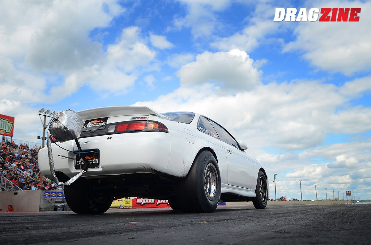 Duy Bui in the “White Rice”, a turbocharged, 2JZ-powered Nissan.