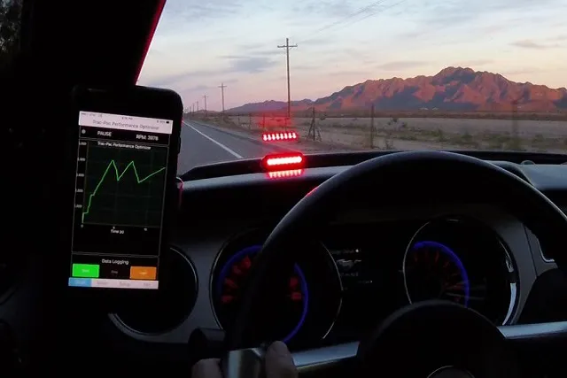 The app also performs automatic analysis for drag racing when data logs are reviewed. A table of statistics is calculated for each gear, including the actual shift RPM, how long it took to shift, the engine acceleration rate during the gear, etc. This is presented in a table for quick review, making it easy to see if driving or vehicle changes are improving performance. A programmable RPM switch output is also available to enable triggering nitrous or an air shifter, for example (requires an additional relay, sold separately).