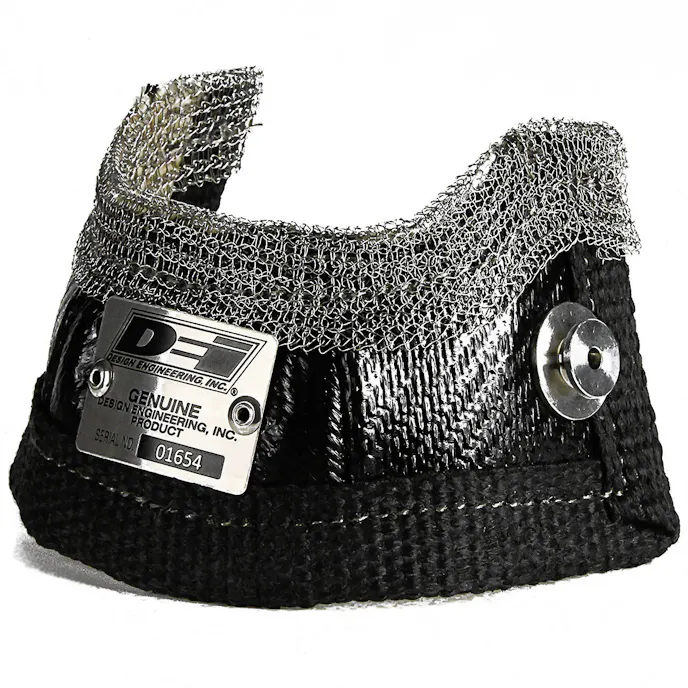 The Wastegate Heat Shields use outstanding thermal insulating properties to reduce heat. Each Wastegate Heat Shield is made of a Titanium LR outer layer that’s backed by stainless steel and silica inner layers. These high-tech composite materials do an outstanding job keeping heat from escaping. DEI uses stainless steel mesh and thread to hold everything together and to increase durability.