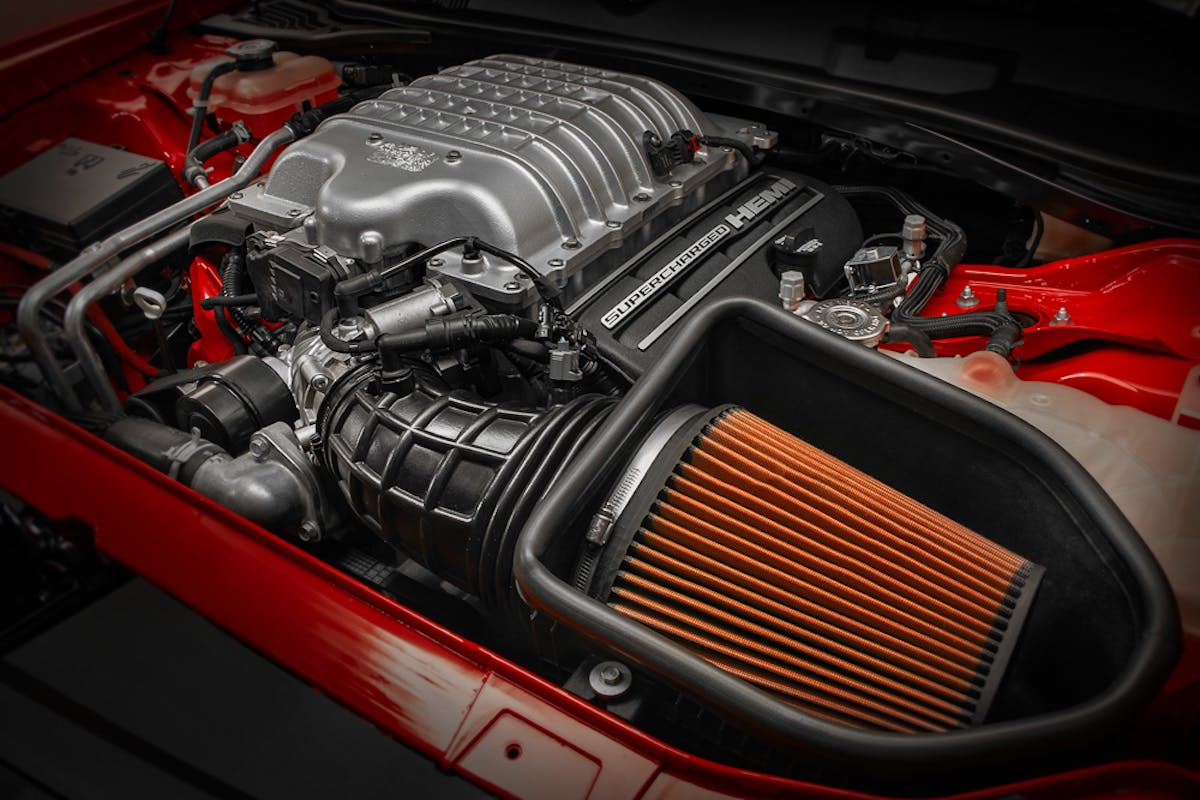 The additional air inlets help reduce the temperature of the intake air by more than 30 degrees Fahrenheit compared with the Hellcat V-8, which improves overall throttle response.