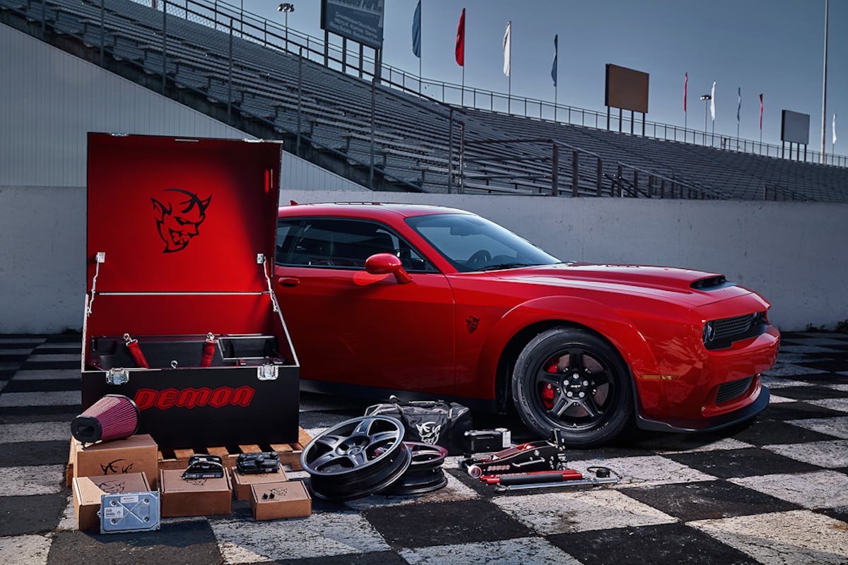 The Demon Crate, available to buyers of the Dodge Challenger SRT Demon, contains components that fully unleash the car’s potential at the drag strip and is fully customized with the buyer’s name, VIN and serial number.