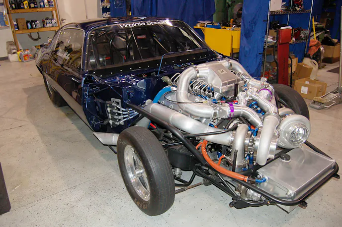 An ATI Superglide 4 transmission with an ATI converter will transfer the power to the rear end via a new PST carbon fiber driveshaft. Miller has made a number of other small changes, including the addition of a chromoly driveshaft tunnel, re-valved the shocks, made some four-link adjustments, built a massive new cowl hood to fit over the Marcella intake, and gave the car a fresh new coat of paint.