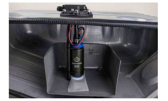 - EFI style tank baffling includes a large 4.3 liter internal fuel tray to prevent fuel pump starvation