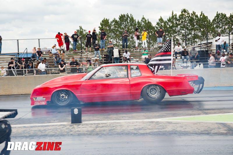During Thursday qualifying he shut the car down short of 1,000 feet and coasted to a 6.22 at just 169.23 mph, good for third on the sheet. On Friday, he again slowed to a 6.35 at just over 140 mph, setting the stage for what he and Tecklenburg planned to be a kitchen-sink run in the first round of eliminations.