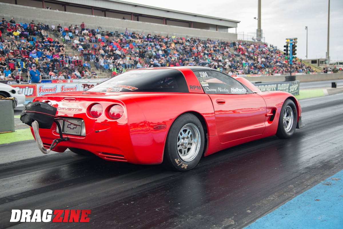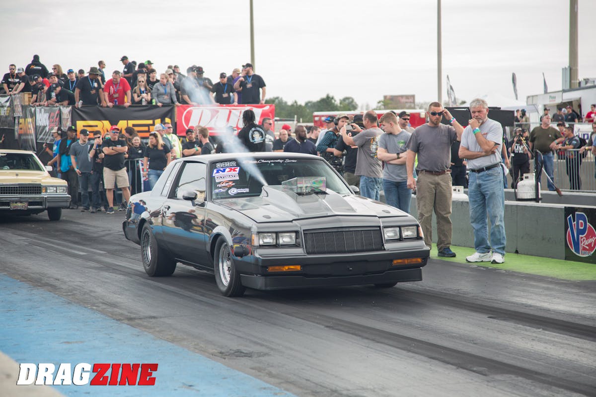 During Thursday qualifying he shut the car down short of 1,000 feet and coasted to a 6.22 at just 169.23 mph, good for third on the sheet. On Friday, he again slowed to a 6.35 at just over 140 mph, setting the stage for what he and Tecklenburg planned to be a kitchen-sink run in the first round of eliminations.