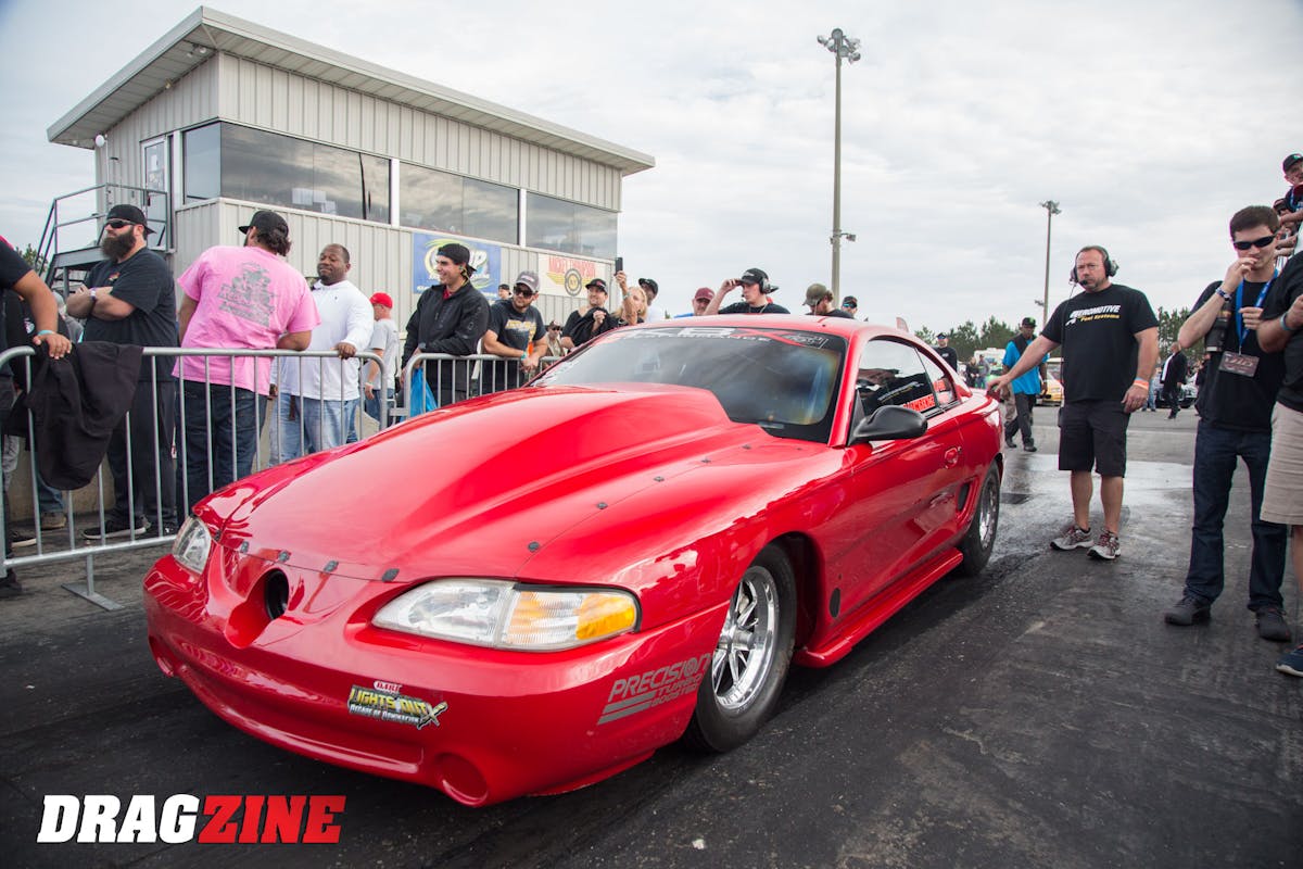 With the combination backed down from the 60-plus pounds of boost it was at in qualifying, Fitzpatrick rolled to a 5.841 at 241.21 mph, compliments of a 1.008 short time and a 3.820 at 195.62 mph. Fitapatrick was dead-late against opponent Mike McBrair and barely caught him in the lights, but it was all for naught, as NHRA officials, fully aware of his intentions, would have tossed him no matter the outcome.