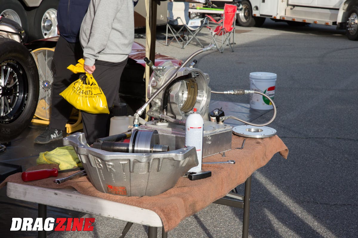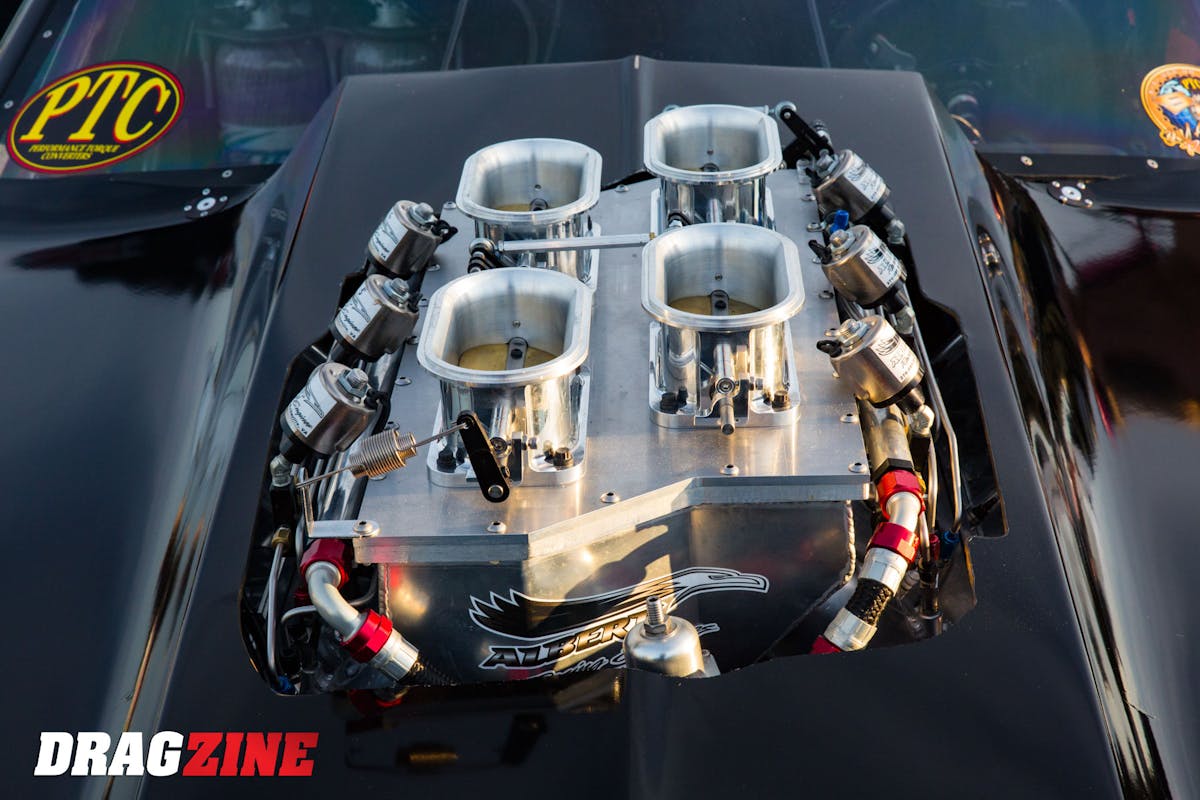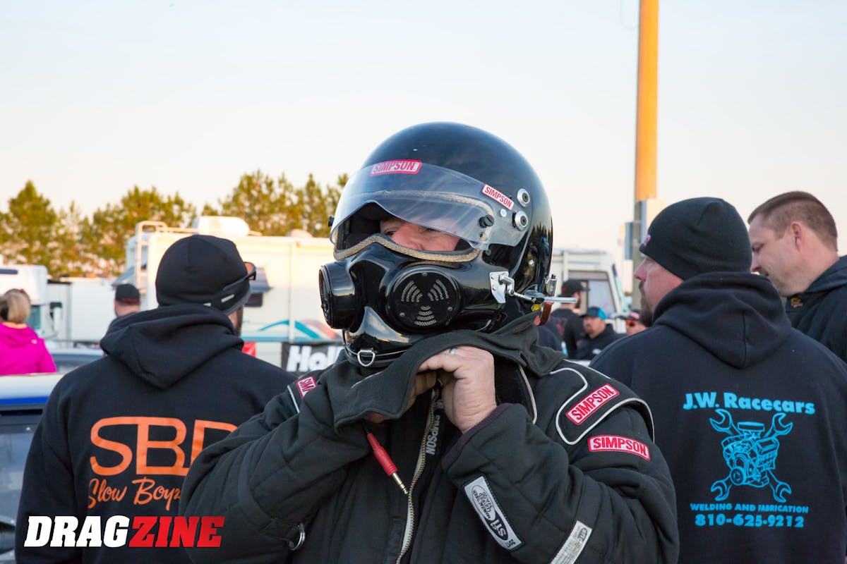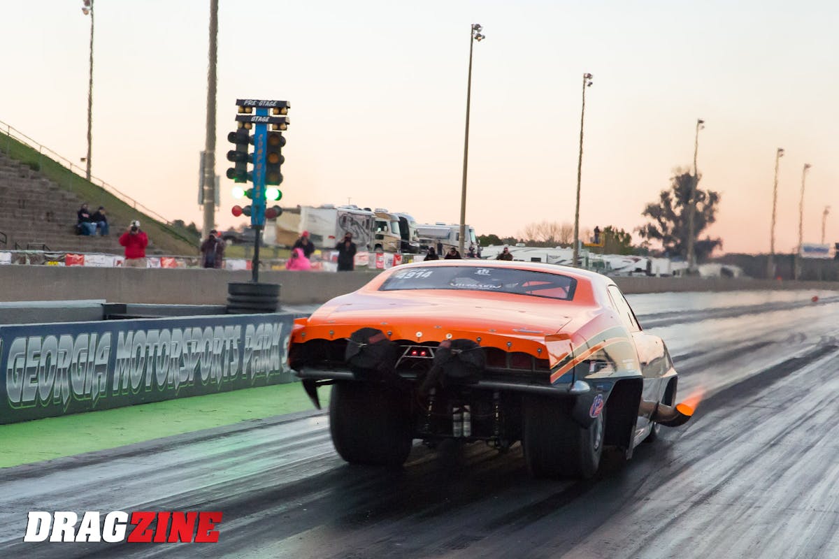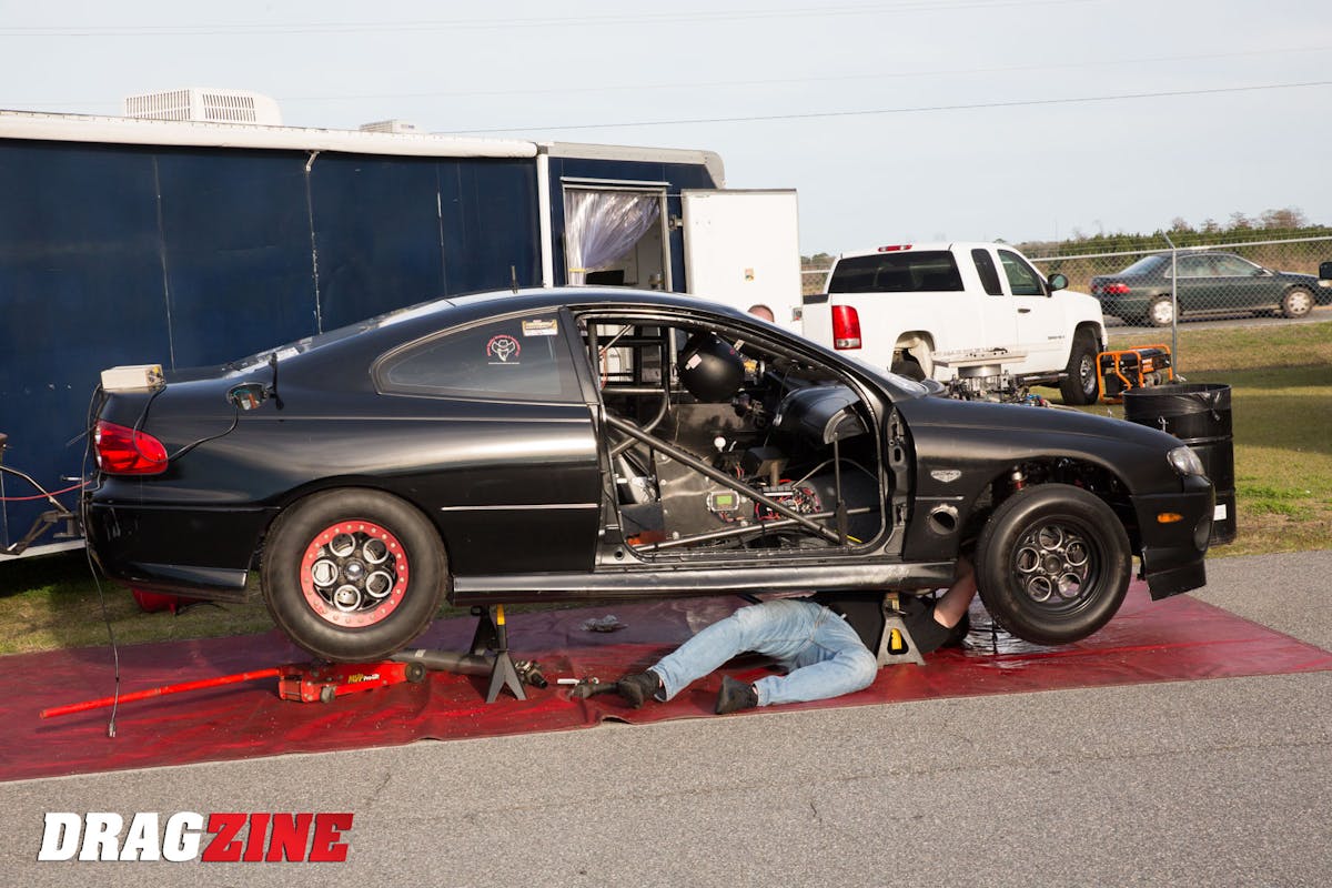 During Thursday qualifying he shut the car down short of 1,000 feet and coasted to a 6.22 at just 169.23 mph, good for third on the sheet. On Friday, he again slowed to a 6.35 at just over 140 mph, setting the stage for what he and Tecklenburg planned to be a kitchen-sink run in the first round of eliminations.