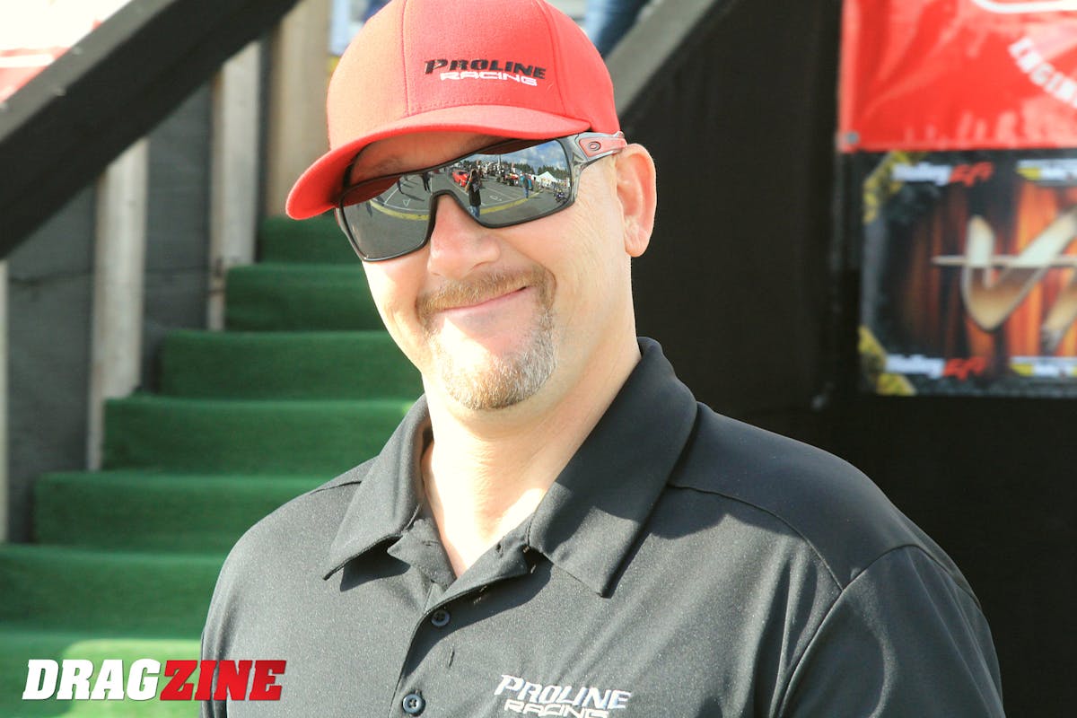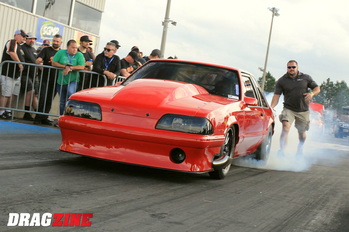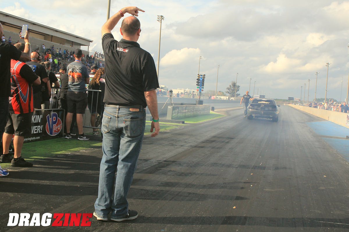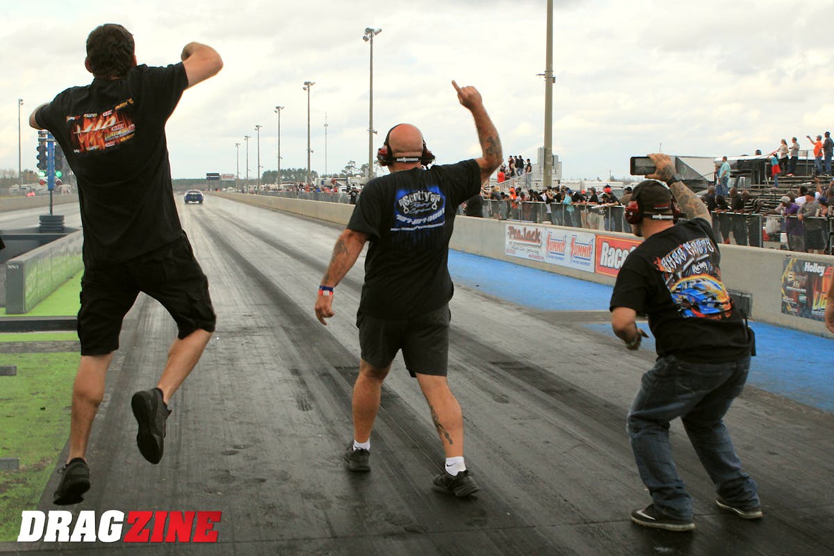 During Thursday qualifying he shut the car down short of 1,000 feet and coasted to a 6.22 at just 169.23 mph, good for third on the sheet. On Friday, he again slowed to a 6.35 at just over 140 mph, setting the stage for what he and Tecklenburg planned to be a kitchen-sink run in the first round of eliminations.