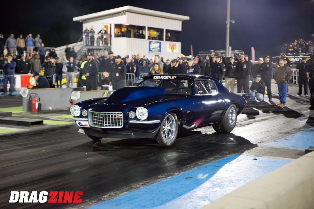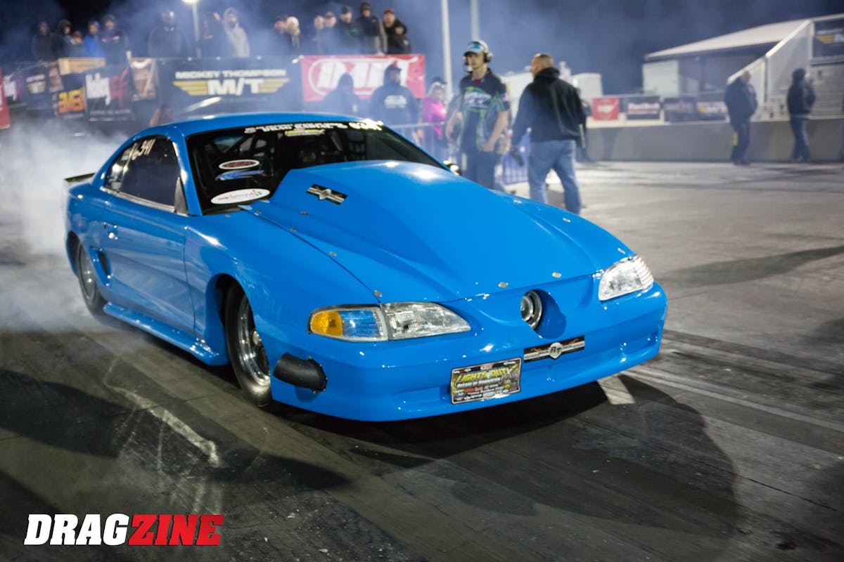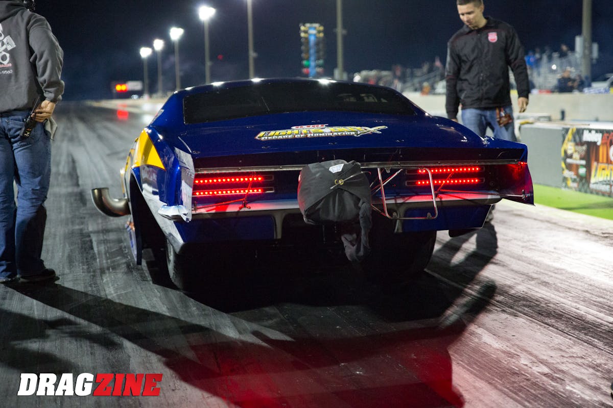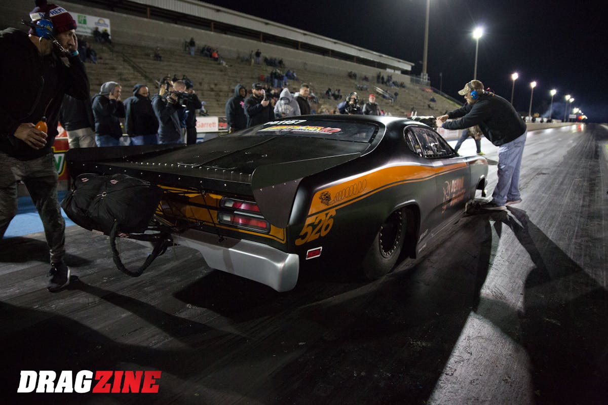 During Thursday qualifying he shut the car down short of 1,000 feet and coasted to a 6.22 at just 169.23 mph, good for third on the sheet. On Friday, he again slowed to a 6.35 at just over 140 mph, setting the stage for what he and Tecklenburg planned to be a kitchen-sink run in the first round of eliminations.