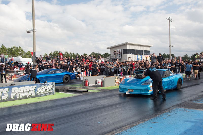 “Unfortunately they changed the rules so if you go too quick now they’ll kick you out. Before we could go make runs and go 5.90s or whatever and they wouldn’t say anything because our chassis was certified for it. They were fine with it,” he adds. “But now we can only do it once and we get kicked out, so we knew going in we were going to get kicked out.”