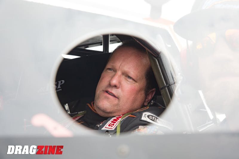 During Thursday qualifying he shut the car down short of 1,000 feet and coasted to a 6.22 at just 169.23 mph, good for third on the sheet. On Friday, he again slowed to a 6.35 at just over 140 mph, setting the stage for what he and Tecklenburg planned to be a kitchen-sink run in the first round of eliminations.