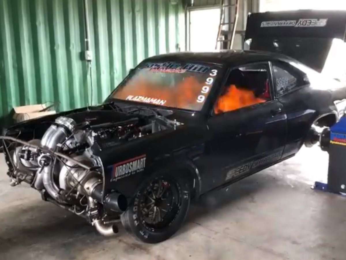 Heiler has put his own Commodore on the dyno before so he’s no stranger to how the process works and just how violent the pulls can be. In this video from his Tuned By Dale Facebook page you can see that the RX3 he’s working on is no joke, this car has been well into the six-second zone on radials. As Heiler makes the pull a breather hose fell off the oil tank and that’s when all hell broke loose. The car was instantly filled with fire that Heiler wasn’t expecting. Thankfully, he only suffered some hair loss and a small burn from this quick but intense thermal event.