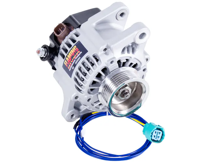 - High output 150 amp or 240 amp alternators are also available for non-racing applications