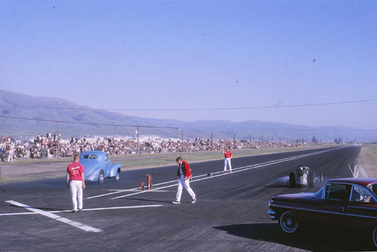 As with any racing venue, receiving the permits for the project was a struggle for Lawrence and company, but once finalized, two perfectly straight paved roads measuring 3/4 of a mile long appeared on the site of an abandoned air field that served as an auxiliary landing strip for nearby Moffett Naval Air Station during World War II.. Amenities like grandstands, concessions, a timing stand and announcers tower, and ticket booths were then added and Fremont opened for business in 1958.