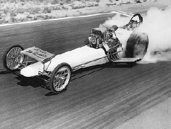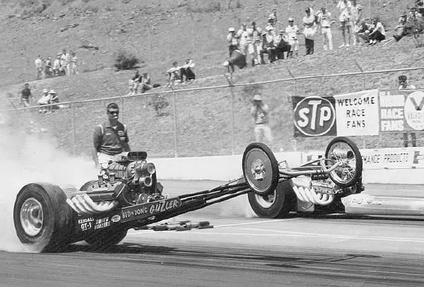 In 1956, Joaquinn Arnett of the famous “Bean Bandits” built Baltes his first dragster, powered by the flathead engine from his coupe. The car was alter switched to Oldsmobile power and campaigned as the Balgtes – Tucker entry, winning numerous titles at Paradise Mesa, including six Top Eliminator titles in a row. During the next six years, Jerry piloted a number of different Gas dragsters throughout his home state, even earning a spot on the Drag News 1320 Top 10 list for a period.