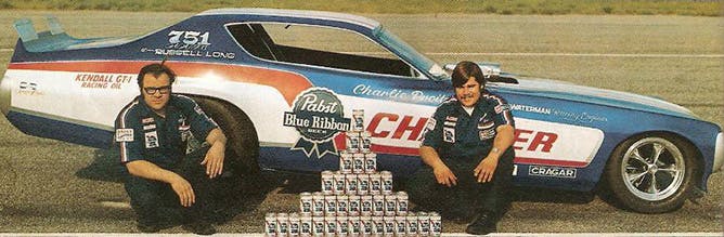 The car generally credited with starting the whole beer wars concept was in fact Racine, Wisconin’s Charlie Proite and his “Pabst Blue Ribbon Charger,” which was driven by a young driver named Russell Long, just 20 years old at the time.