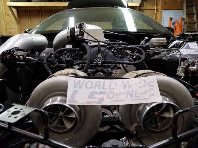Now under the hood of the Blackhawk is a Venom Racing Engines 388 cubic-inch Dart LS Next SHP block-based engine. Stuffing the boost into the engine are a pair of Precision turbos that work with Precision wastegates and blow-off valves that are part of the Vasko Speed & Performance-built turbo system. A TH400 transmission from Chad & The Shop puts the power down with a few special and secret tricks to make it work better in No Prep racing. What makes the Blackhawk even cooler, besides how rare the car is and how much power it makes, is that the Pontiac is still driven on the street.